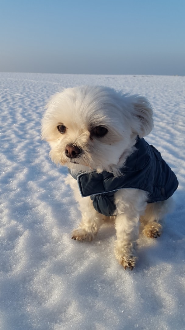 Mama zur Massage und der Rest in die Sonne an den Strand. Wie die letzten Tage wartet schon unser Begleiter. Ein sehr lieber verspielter Kerl aber auch nicht abzuschütteln. Der Strand ist auch total vereist.