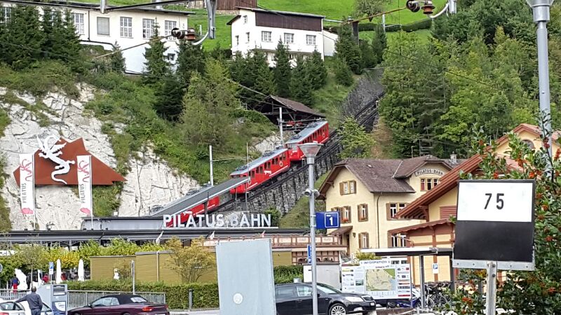 Heute ging es nach einem lockeren Tag mit Ausschlafen und auch Nutzung des sehr sauberen WC an unserem Übernachtung Platz erstmal zum Einkauf mit dem 1. Schock des Tages, boh is die Schweiz teuer. Dann zur Pilatus Bahn. Der steilsten Zahnradbahn der Welt mit 3 Etappen von 48%. Sogar ich musste zahlen. 2. Schock was die hier so nehmen. Nun aber auf 2106m hoch, siehe Bilder